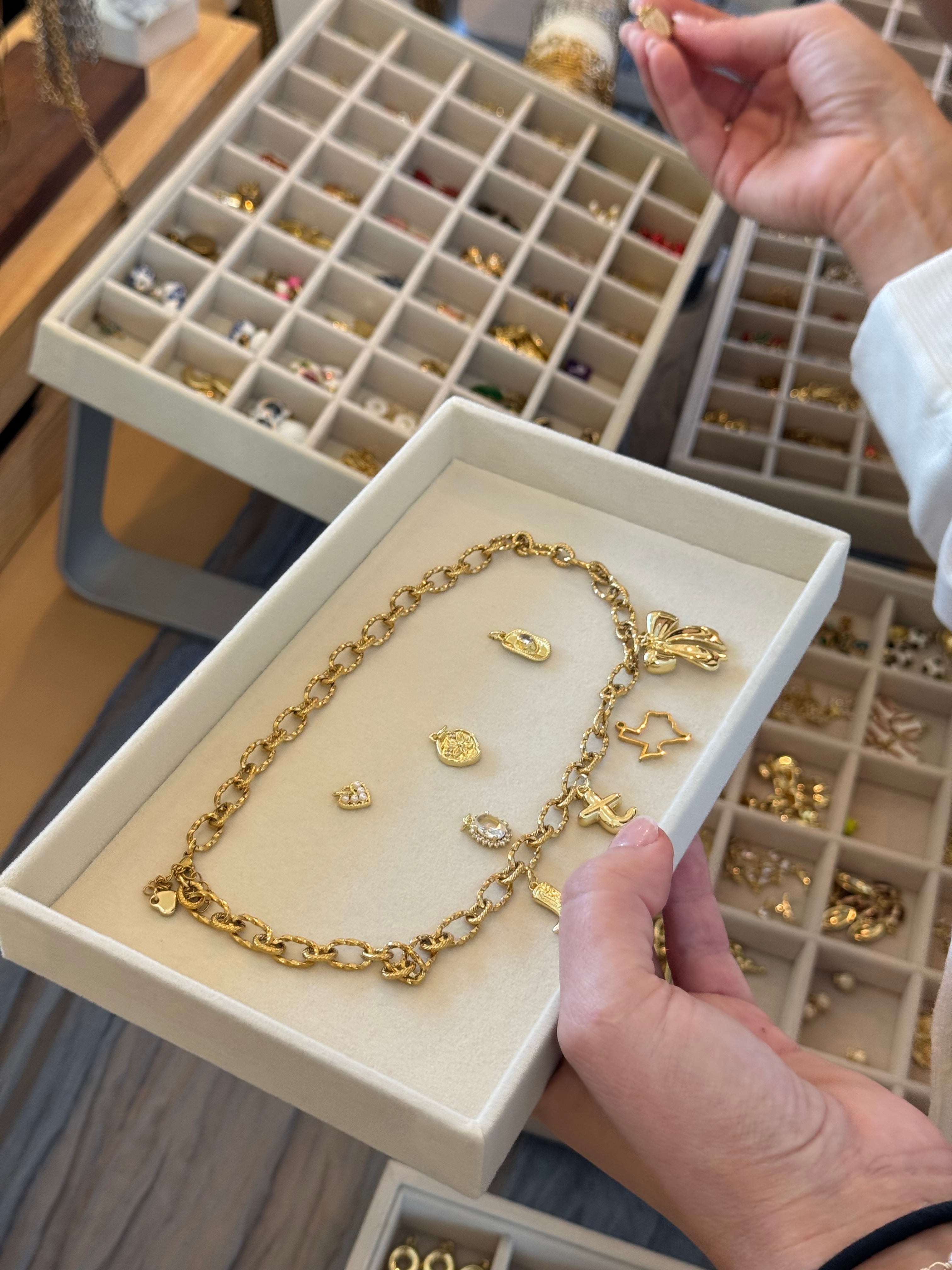 We take care of the rest! We will make the charm necklace or bracelet for you. If you would like to design and chose the position of your charms please leave us a note with your order at checkout or send us an email to ailemacharmxco.com